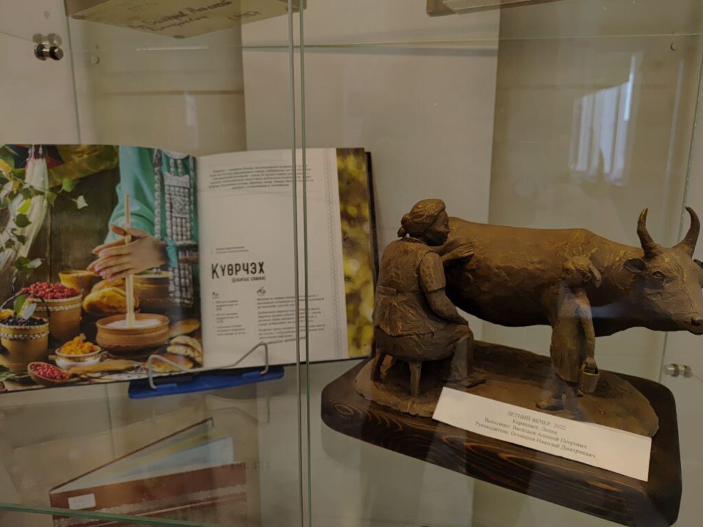 Это выставка-исследование, выставка-путешествие. Рядом с каждым рисунком или скульптурой, созданными будущими педагогами, библиотекари разместили ту самую книгу, которая вдохновила автора. Это позволяет зрителю не просто восхититься мастерством, но и проследить путь от слова — к образу, от прочитанного — к воплощённому.